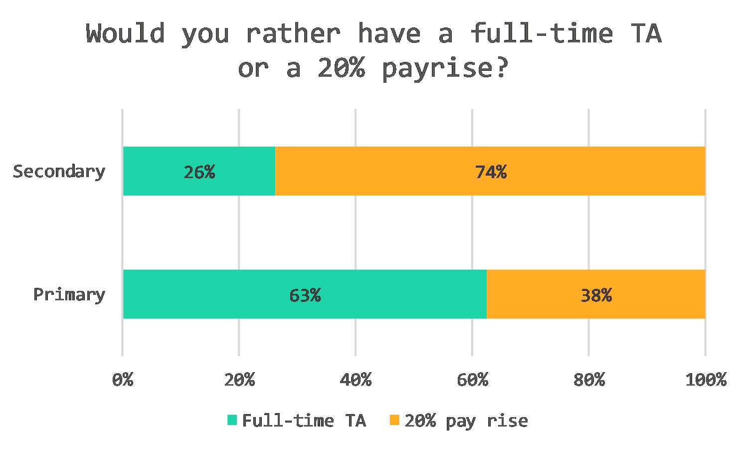 So, it is perhaps no surprise that when we asked our panel whether they would prefer a full-time teaching assistant or a 20% pay rise, the split between sectors was stark.