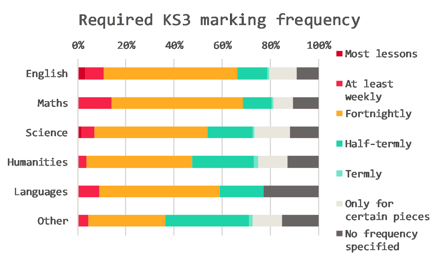 Even in languages and humanities – which tend to have fewer lessons than maths, English and science – around half of teachers were expected to mark fortnightly.