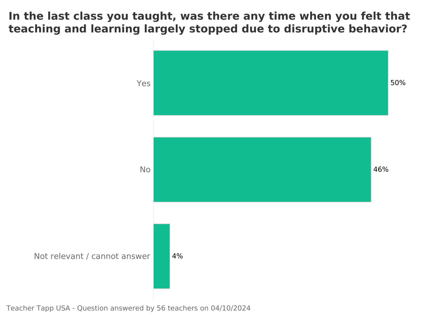 This happened in 50% of classrooms. But is this typical for all school days? Not necessarily. We ask this question on Fridays, which we know can be different โ for both students and teachers. End-of-week fatigue, excitement for the weekend, and less structured lessons can all contribute to this shift.