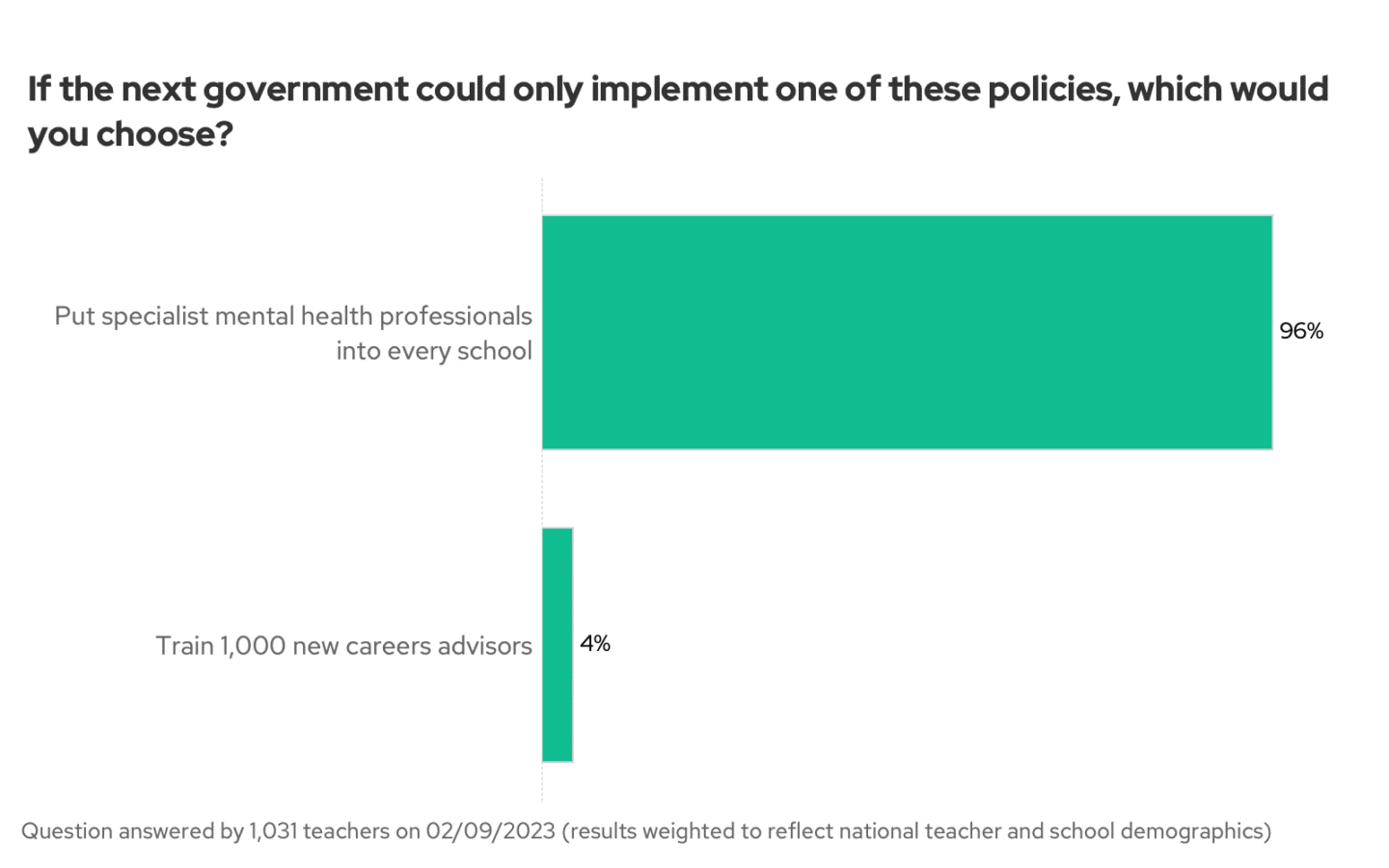 However, because the Teacher Tapp panel is so large we can be more efficient. And instead of answering 110 questions, you only had to answer 10 each.