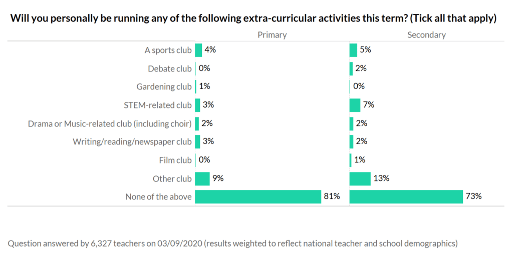 School will be very different this year. In a normal academic year, most of you contribute to some sort of lunch-time or after-school club. We asked who is running a club this term, and very few of you are.