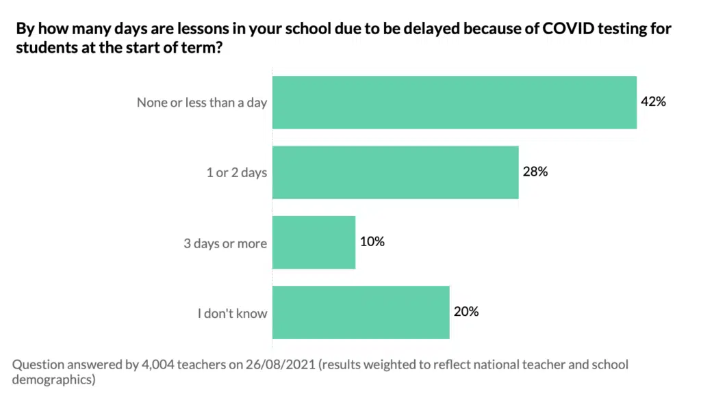 Double-testing is back for secondary schools, who need to ensure students are twice-swabbed to mitigate Covid spread. The government said schools could delay the start of term to help with this, and 40% of schools appear to have taken up this offer, with 10% delaying lessons by three days or more, and a further 30% by just one or two days.