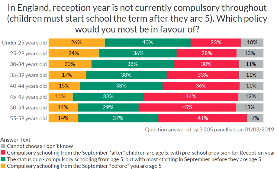 One group who are much more in favour of a later start for school is older teachers. This makes sense to us – most under 25 year old teachers would have started school when they were 4 year-olds, whereas many older teachers would have started when they turned 5. If it was alright for me, it’ll be alright for them…