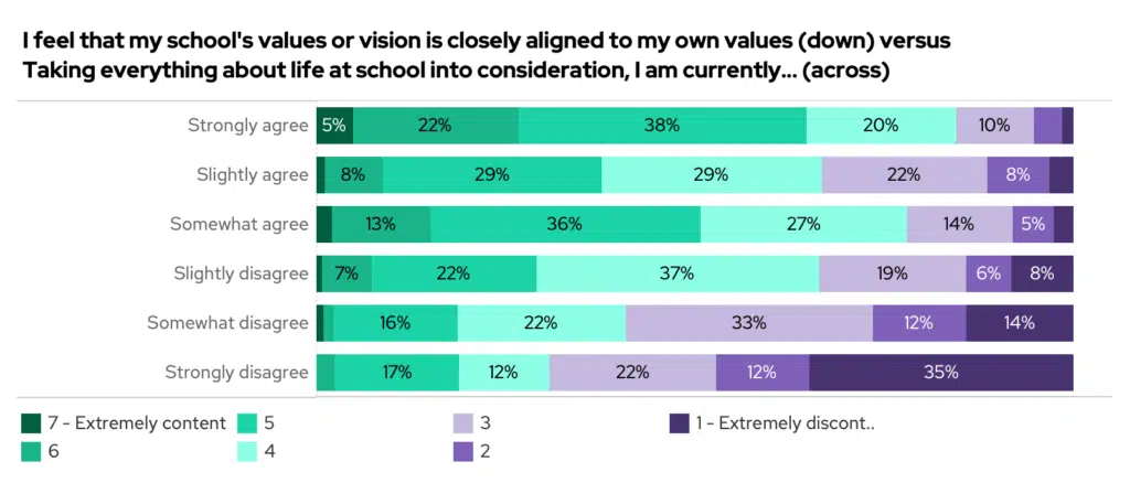 But does the school’s vision and values matter? We regularly ask how happy you feel about life at school (as a benchmark for our School Surveys). So we wondered, is there a connection between how happy you are, and how well the school’s values align with yours?