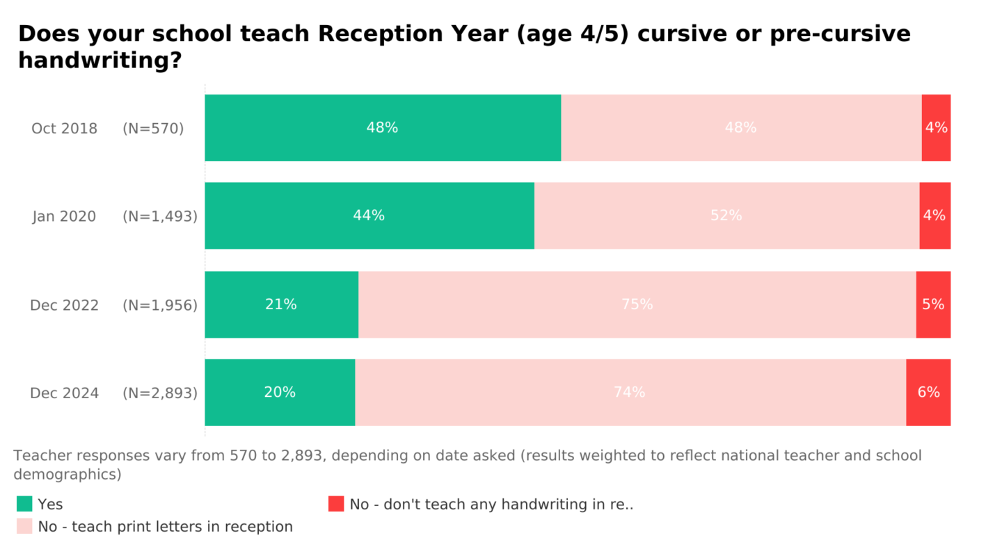 However, 20% of schools still teach cursive or pre-cursive handwriting.