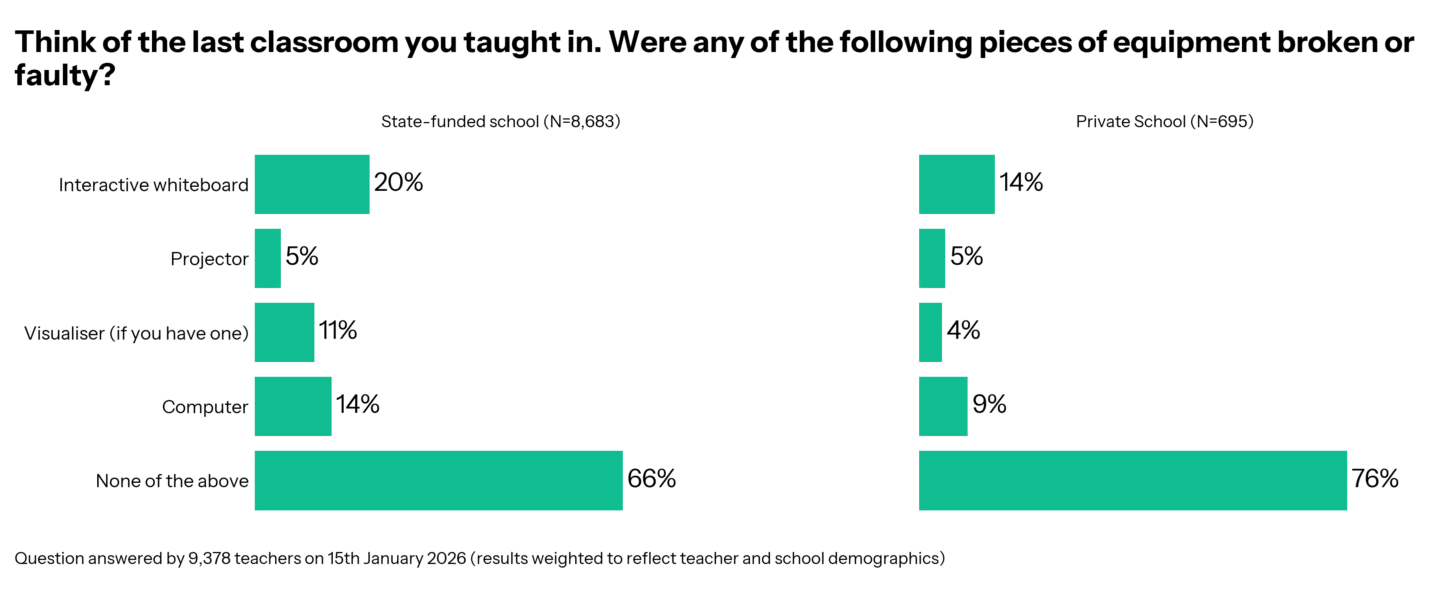 Having a classroom full of tech is great – but it’s even better if it works. One third of state-funded schools have faulty or broken technology, compared to 24% of teachers in private schools.