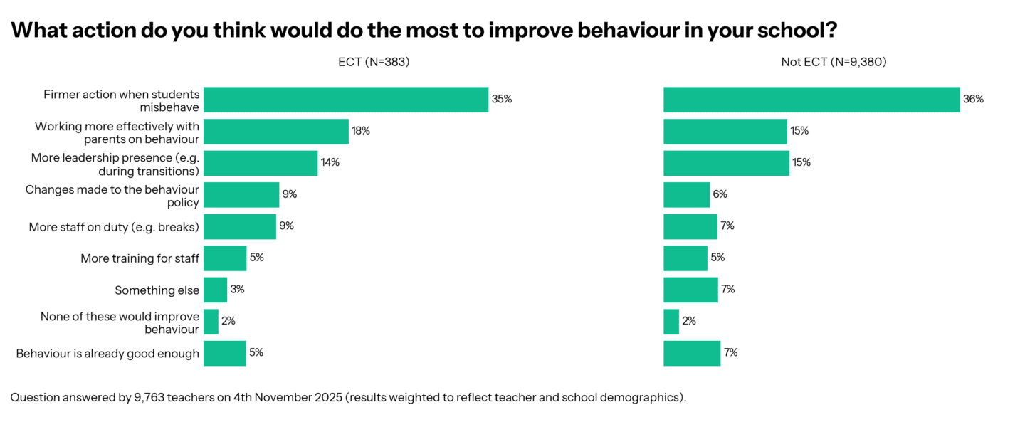 This points to a need for clear systems, visible leadership, and collective consistency — helping ECTs feel they’re not tackling behaviour alone.