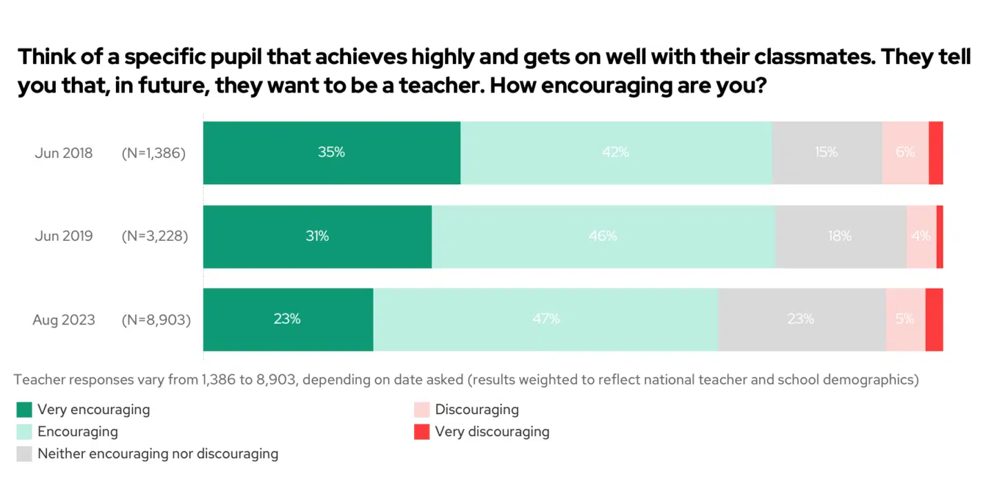 This week, we repeated a question we’ve been asking since 2018: would you encourage a high-achieving and friendly pupil to become a teacher.