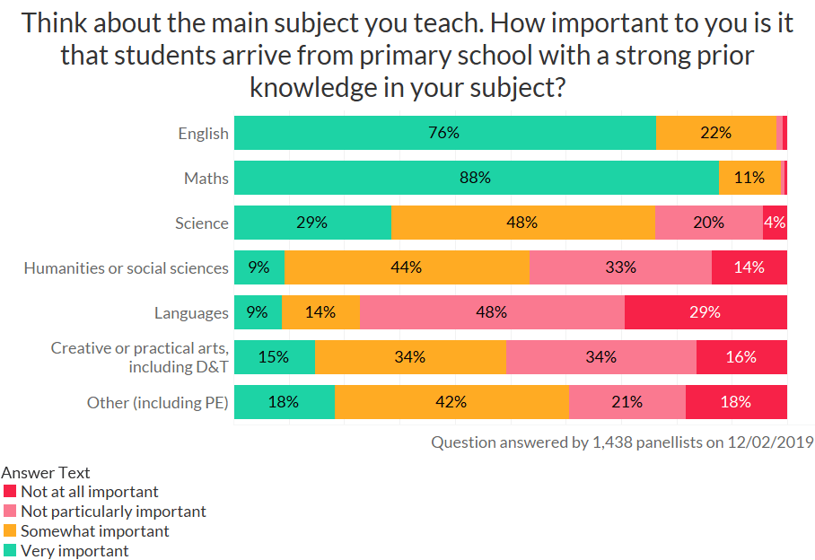 3. Turns out, English and Maths teachers feel it is very important that pupils turn up with strong prior knowledge.