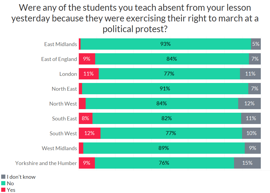 Now we find they’re also the region with the highest percentage of teachers affected by pupils exercising their right to march last week. The rebels!