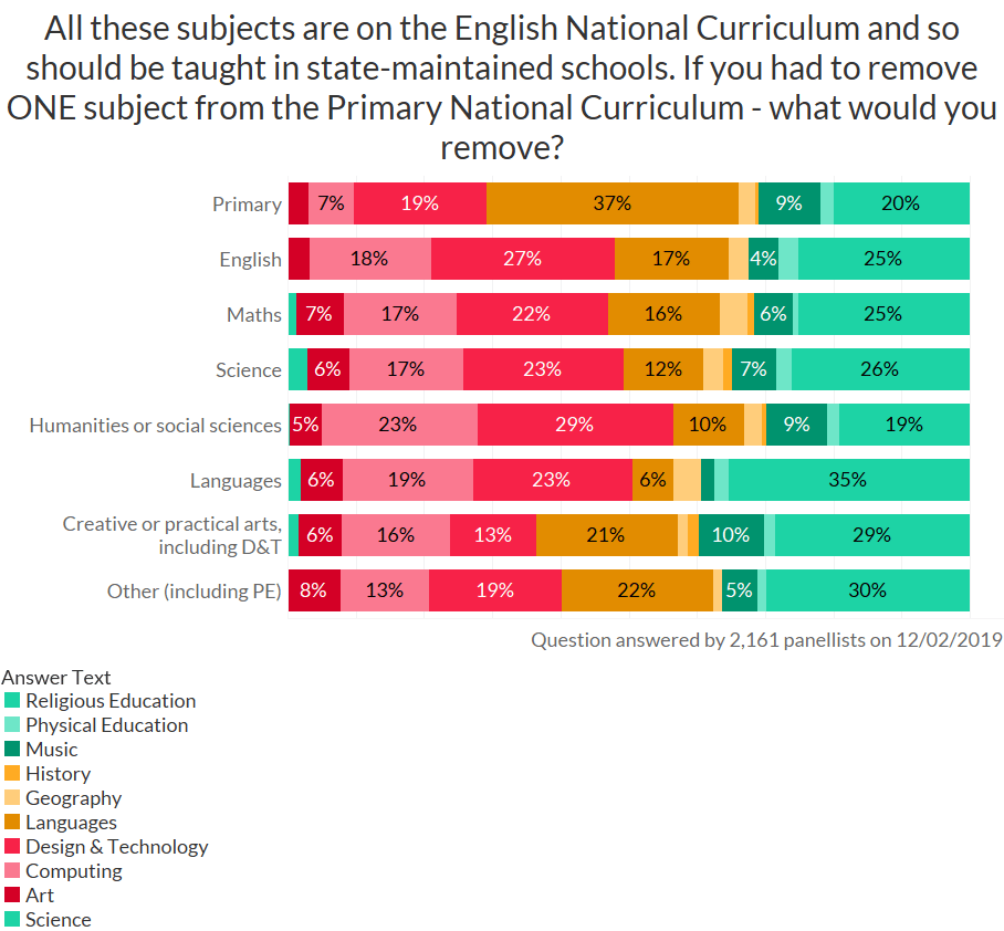Note that the linguists don’t agree! Just 6% of language teachers think it should go from the primary curriculum. Which means that even though language teachers don’t think prior knowledge is all that important, they nevertheless want primary schools to keep teaching it.