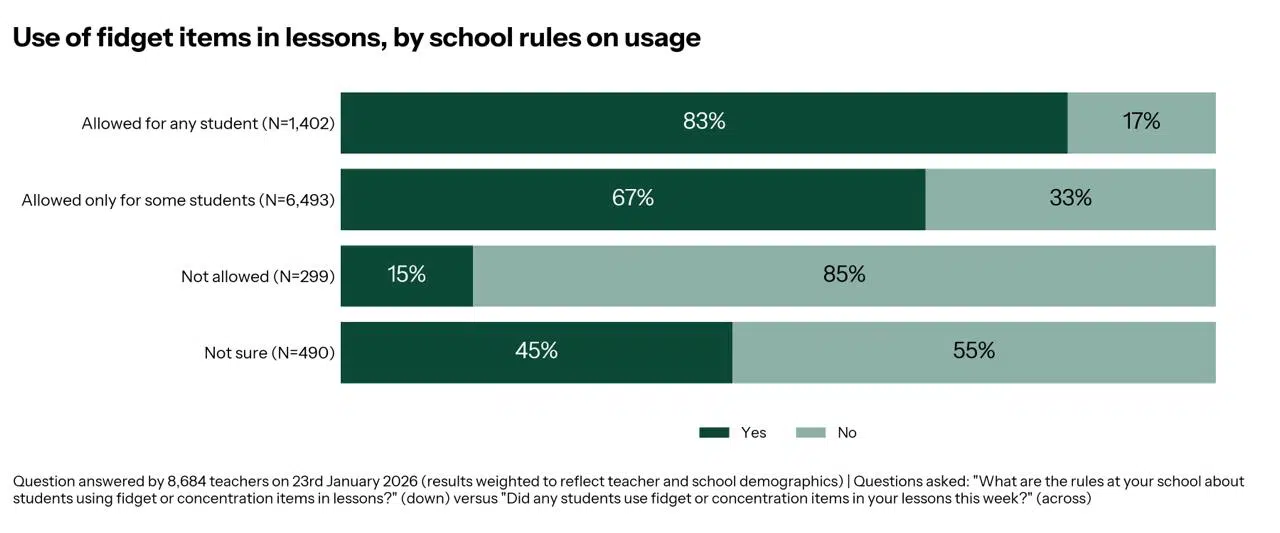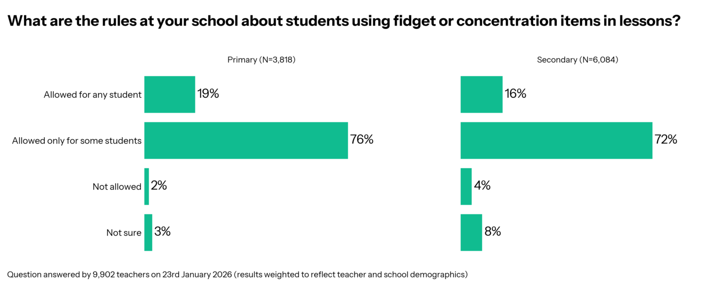 - Fidgets were banned in a small number of schools (2% of primary and 4% of secondary teachers).