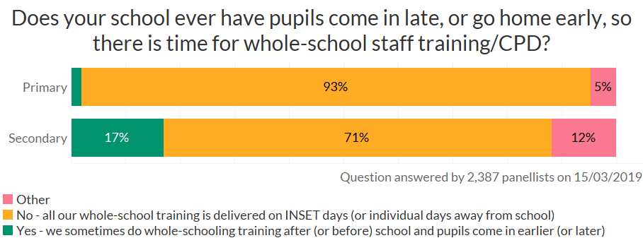 Since then, things have changed a bit, and we’ve noticed that secondary schools have started switching to other CPD arrangements, such as after-school twilight sessions.