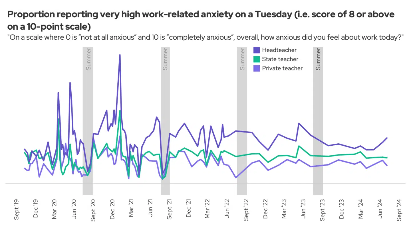 Last year, anxiety scores in July were the lowest of the year for headteachers, but this academic year they are the highest.