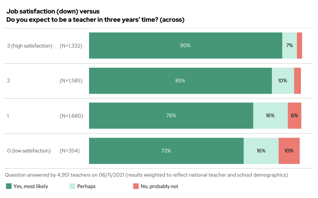 Then we cross-tabbed with recent questions about whether or not you see yourself as a teacher in three years’ time. Look at the difference!
