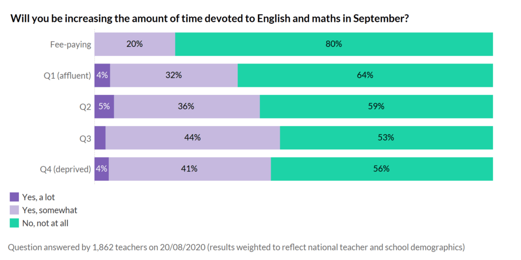 There are also curriculum changes afoot in primary schools. In the schools serving more low income communities, almost half of you have said you will be increasing the time devoted to English and maths.