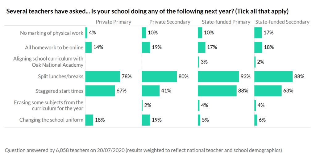 Split lunches and online homework are popular across the board, however private schools are three times more likely than state schools to be implementing a new uniform policy.