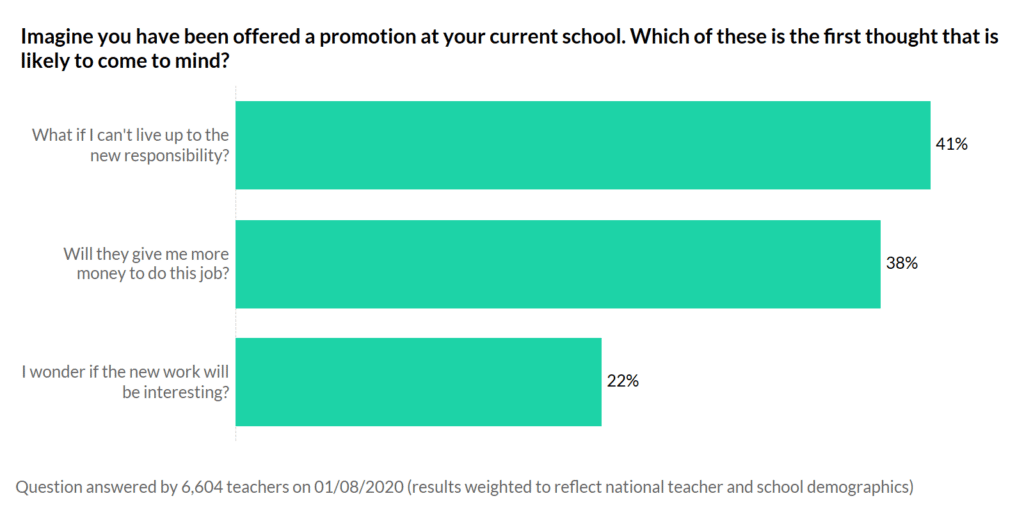 Being a conscientious bunch, over 40% of you told us that your first concern would be whether you could live up to the responsibility. Though, only a marginally smaller number of teachers told us that their first thought would be about a pay rise!
