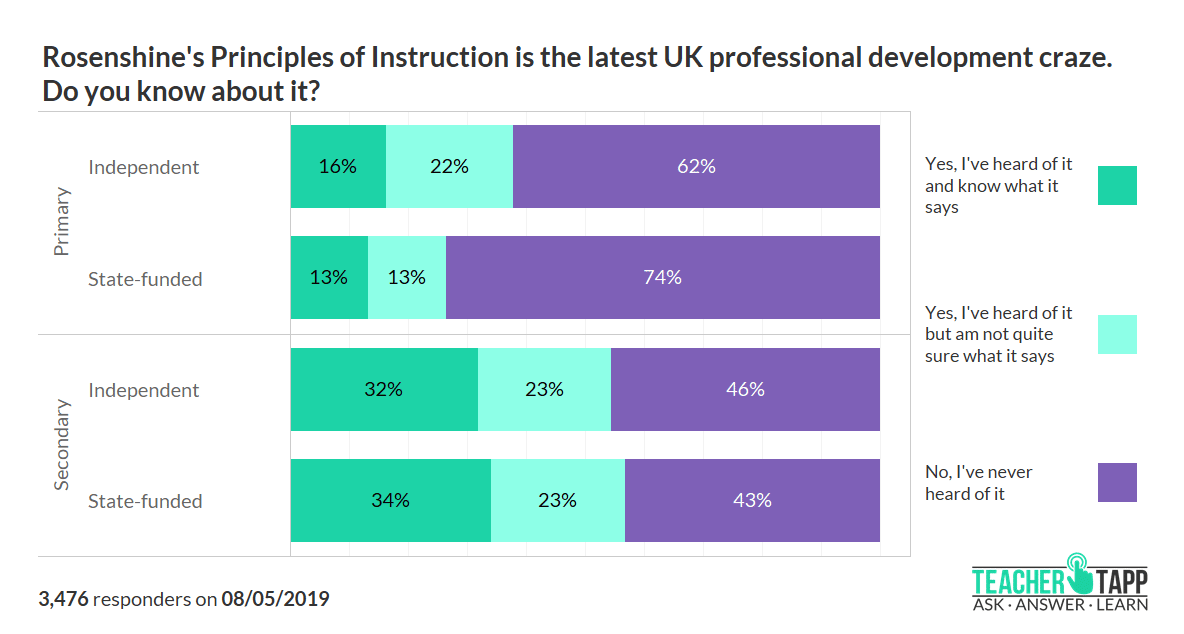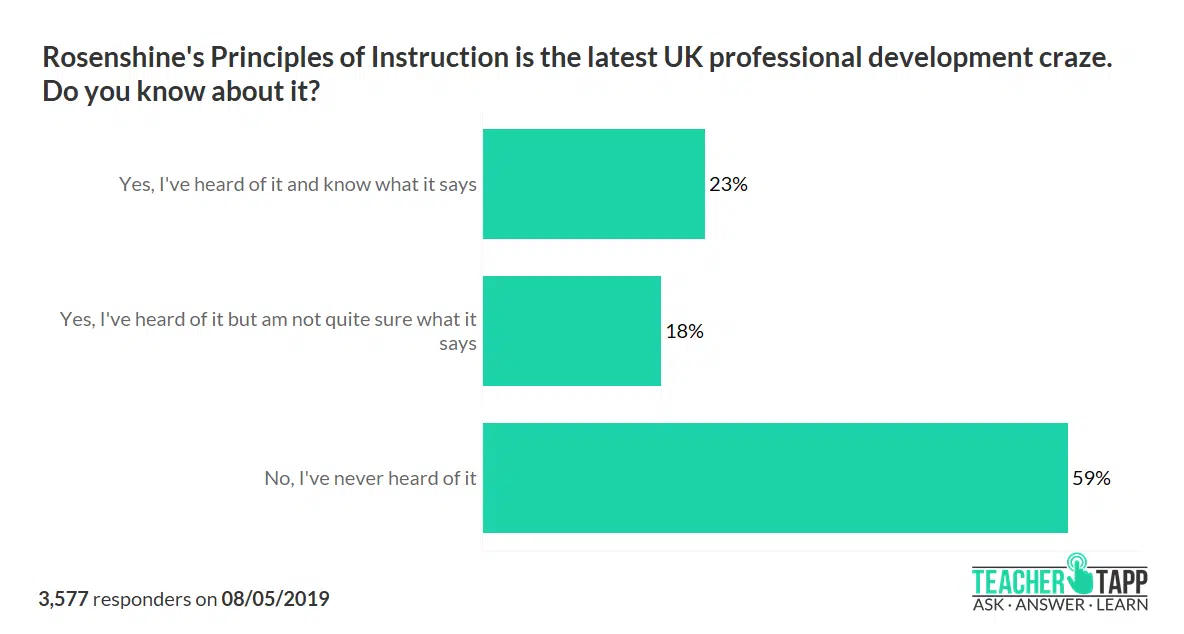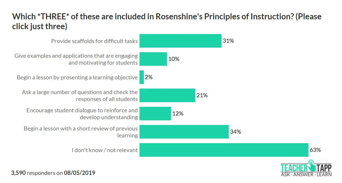 And yes! Those of you who said you knew Rosenshine generally selected the correct answers to our follow on question asking you to name three of the Principles.