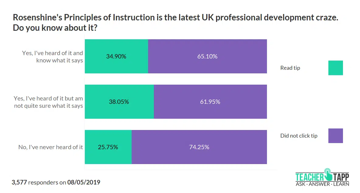 But those of you who already knew about Rosenshine were more likely to click to read it again than those who said they had never heard of it!