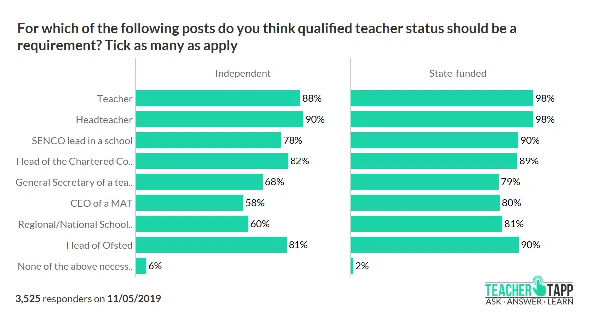Teachers definitely have a preference for people with qualified teacher status to take senior positions in education.
