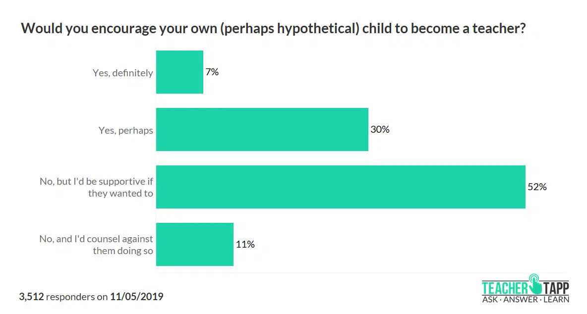 Given the love for qualified teachers you might think this would mean everyone is trying to encourage people into the profession. As it stands, however, teachers are not that keen to encourage their own children to do the job!