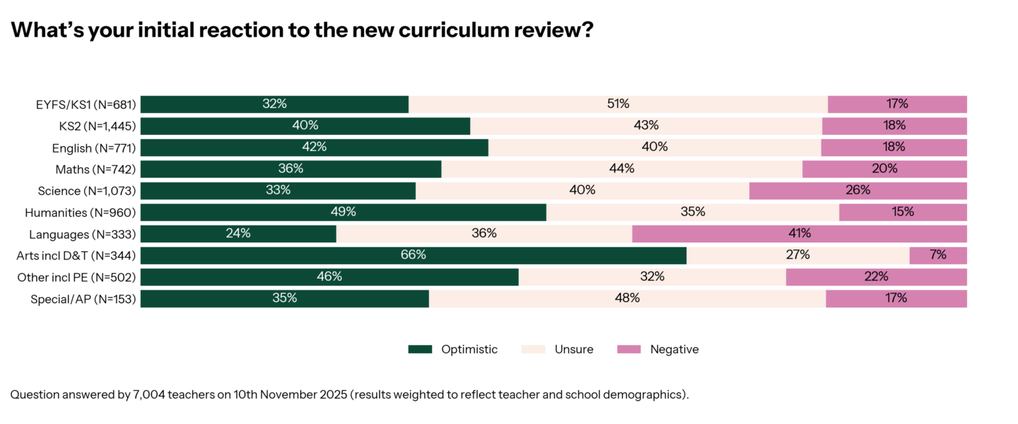 If you haven’t had a chance yet to see the contents of the new curriculum – don’t worry. On the day itself, 43% of teachers and 31% of school leaders hadn’t had a chance to look – and when we followed it up after the weekend, there were still many teachers who hadn’t had a chance to look at it (30% and 17% respectively).