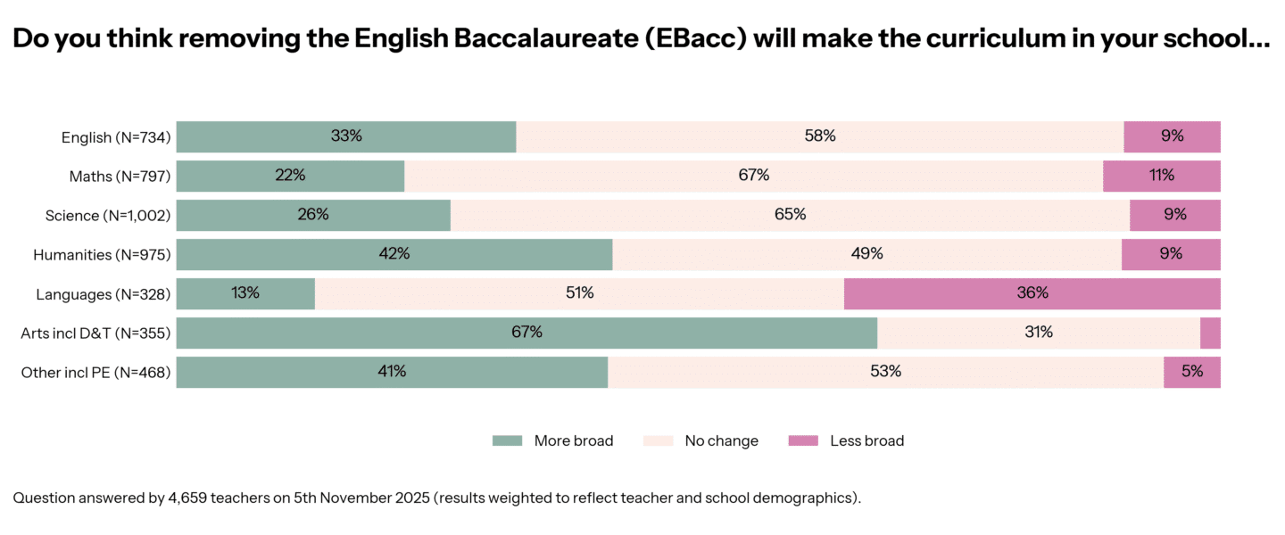 One of the big pieces of news in the review was the removal of the EBacc performance measure, and this news has clearly pleased some subjects more than others.