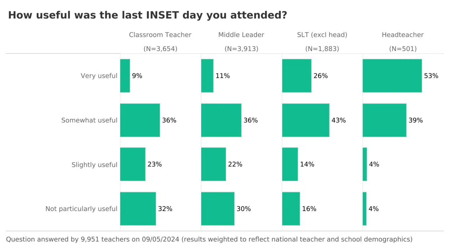 Classroom teachers are the least likely to describe their inset as ‘very useful’ with less than one in ten tapping that option.