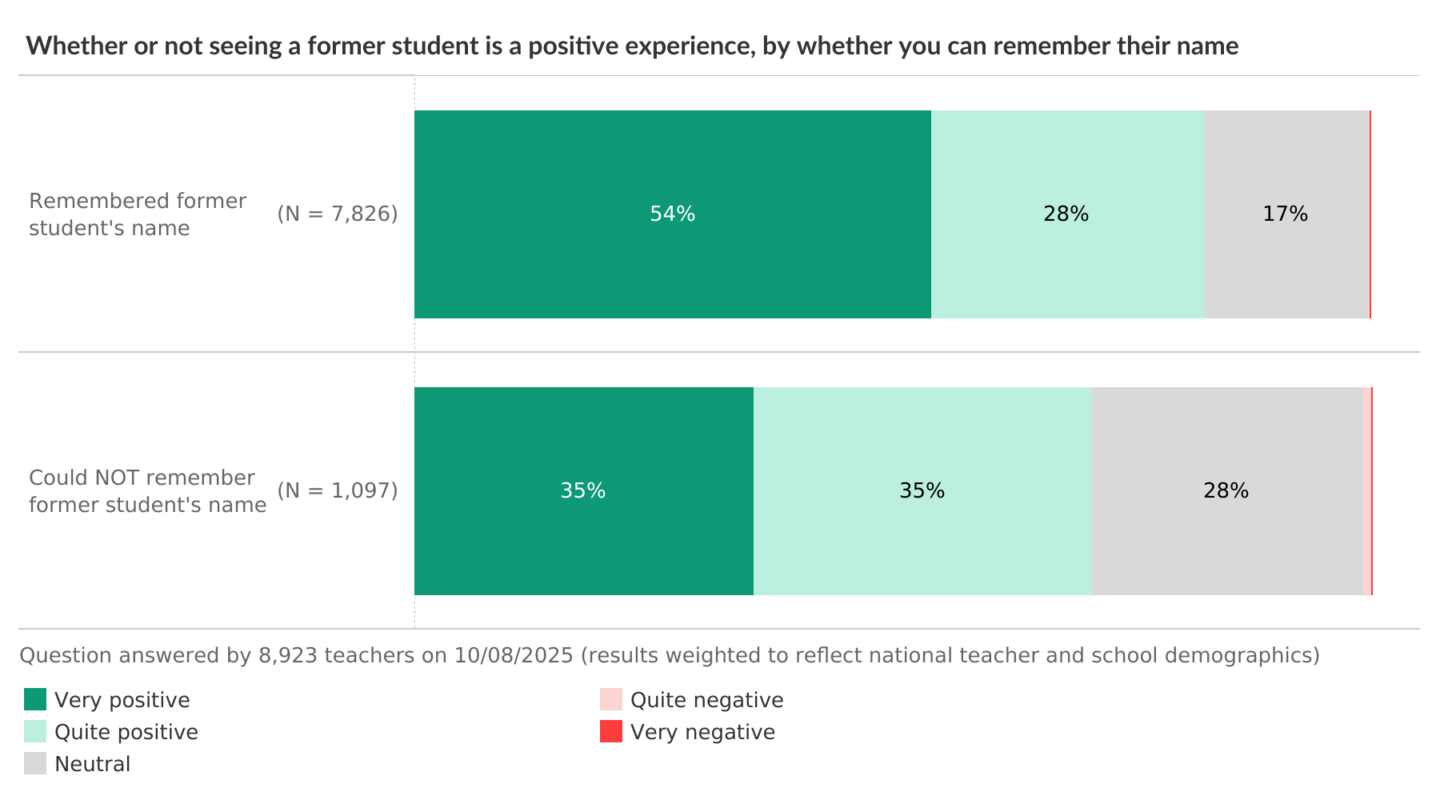 Teachers who remembered the name were much more likely to say the experience was positive (54%).
