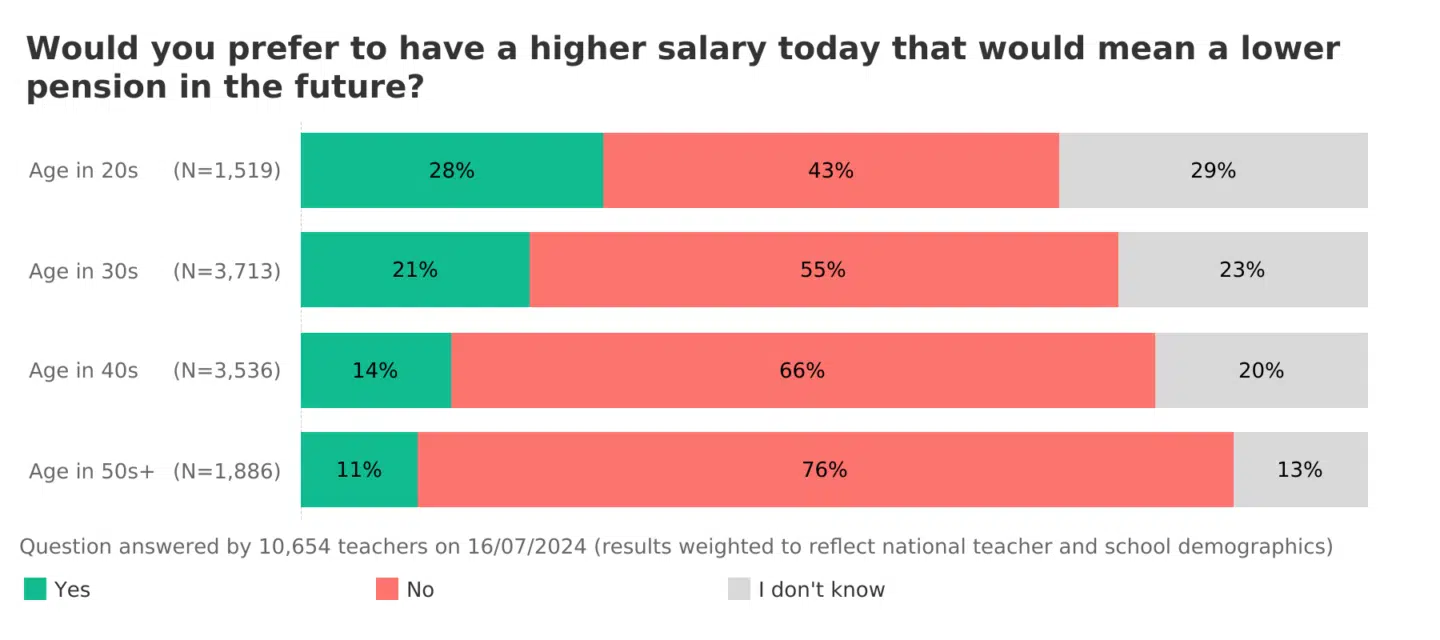 Teachers aged 50 and over were the least likely to pick salary over pension with just 11% choosing that option.