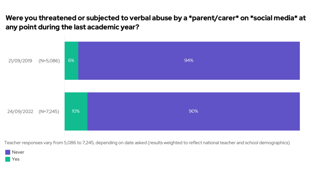 Verbal abuse from parents is an unfortunate part of life as a teacher. Over the last academic year, 31% of you told us that you had been subject to abuse from parents and 10% said you were threatened or subject to verbal abuse on social media.