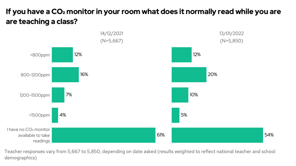 Finally…an update on how your CO2 monitors! Two weeks ago, we found that 4% of you were reading >1500ppm regularly on your monitors, but 61% of you didn’t have a monitor to record. One month on from the initial readings – have things changed?