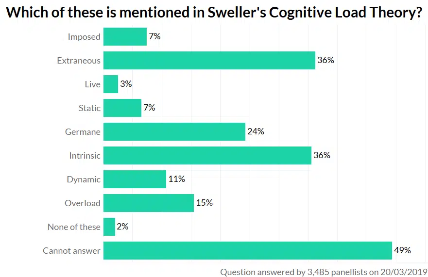 So we asked. And it turns out that although a majority of teachers have heard of cognitive load theory, few could correctly identify the three types of cognitive load mentioned by Sweller – which