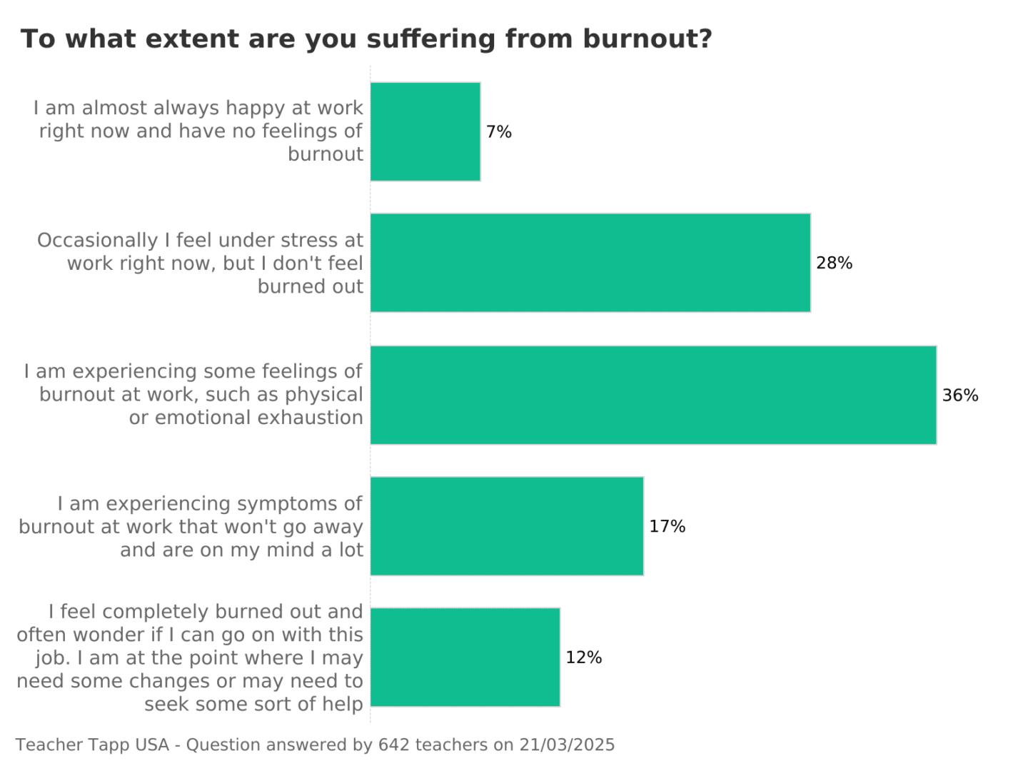 In contrast, just 30% of teachers don’t feel burned out – either sometimes feeling stress or completely happy!