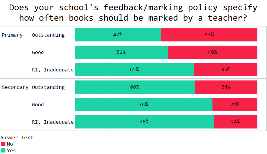 Marking policies appear to follow the usual drill, though note how much more prescriptive secondary schools are than primary!