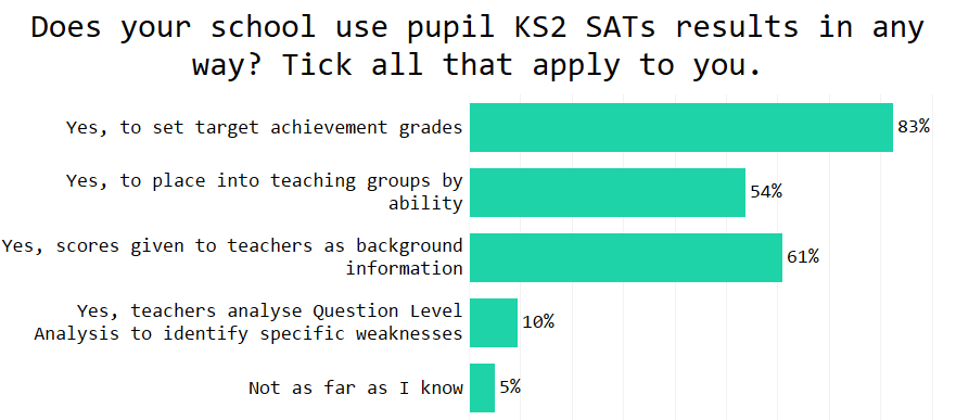 Secondary school teachers tend not to trust SATs results, and yet the scores are used by secondary schools for many things. |Such as:
