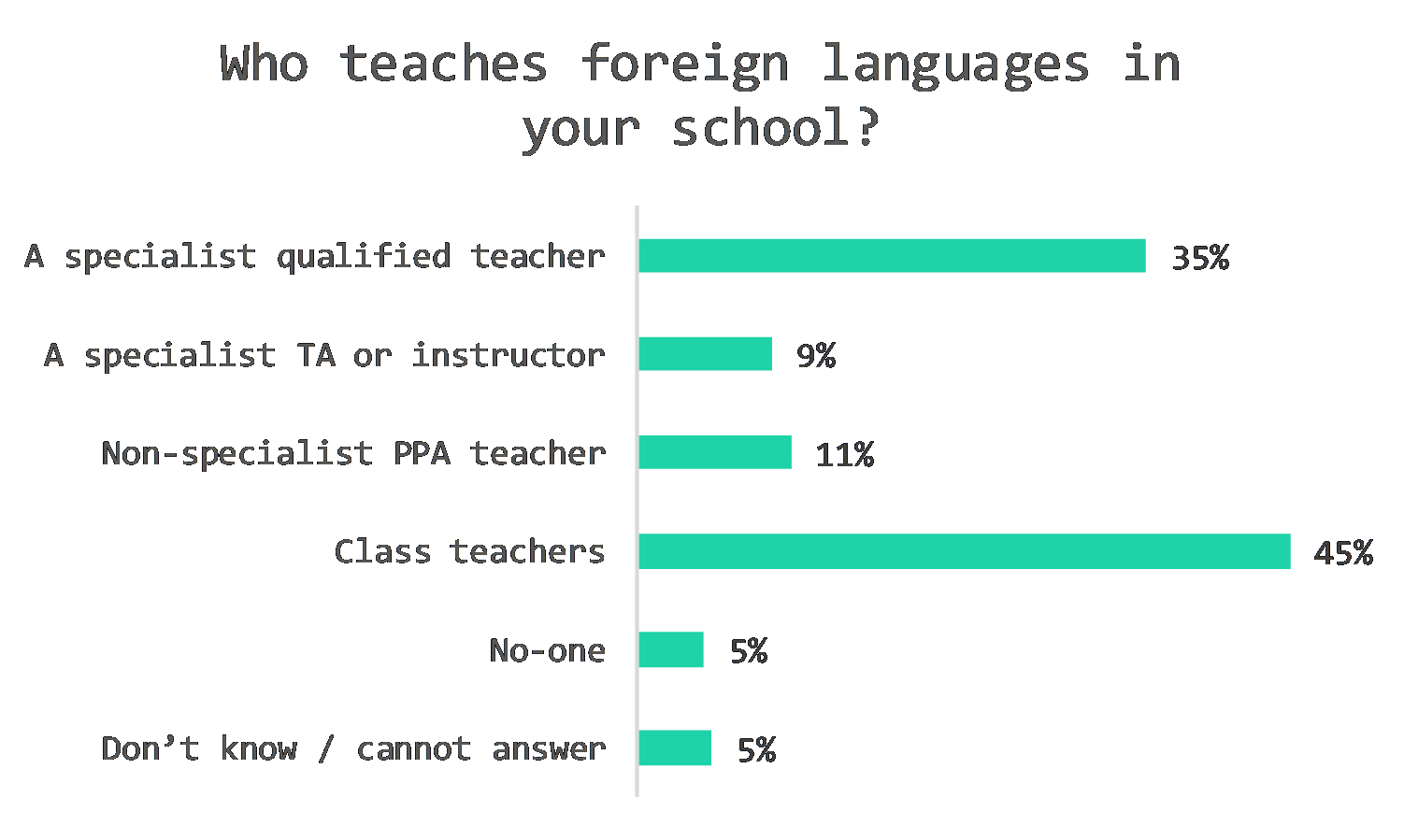 In around half of our panellists schools languages are taught by specialist teachers or teaching assistants work. In the other half, classroom teachers are expected to lead it themselves.