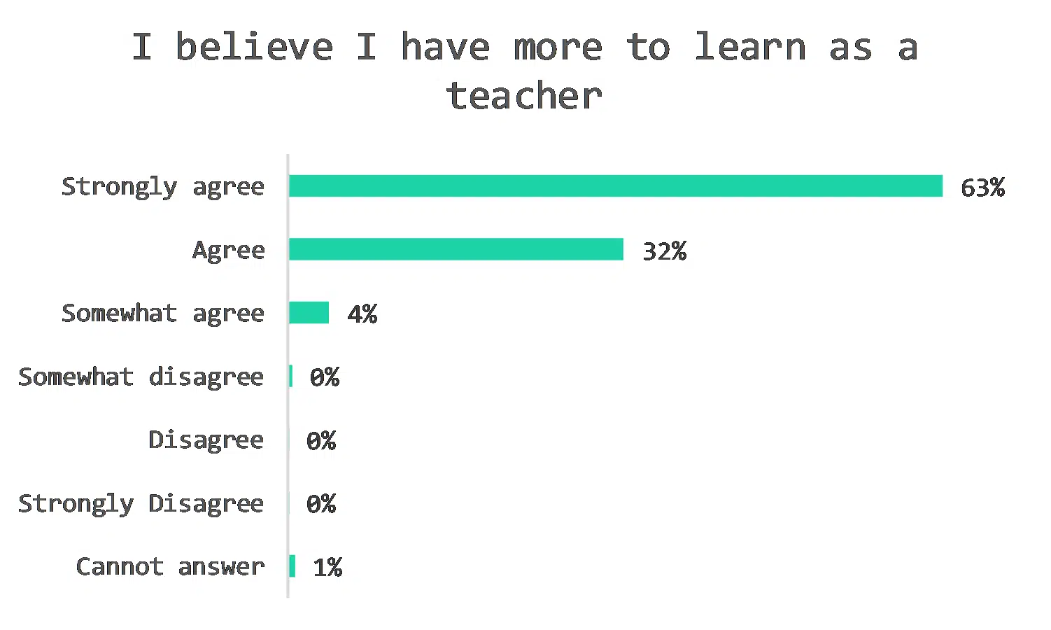 A whopping 96% of you either agreed or strongly agreed that you had ‘more to learn as a teacher’.