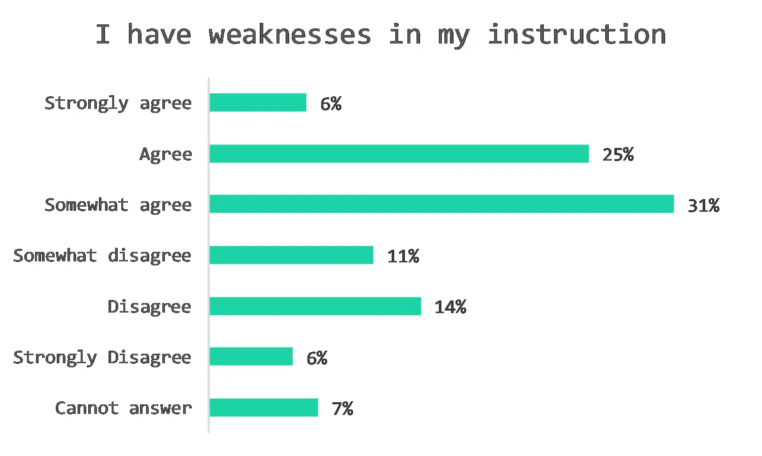 But only a third agreed or strongly agreed that you had weaknesses in your instruction.