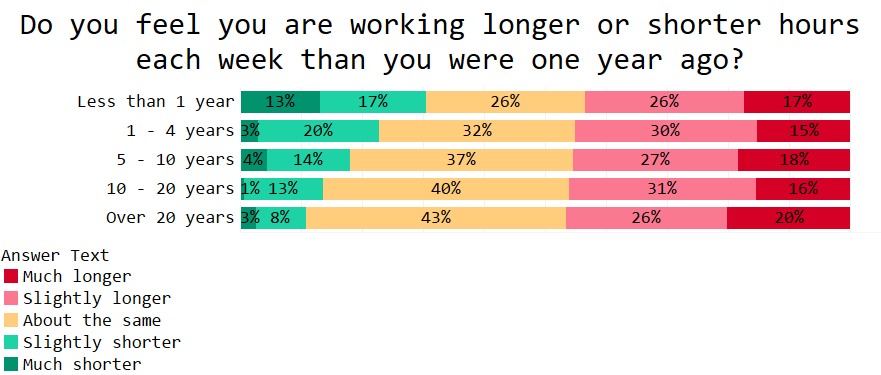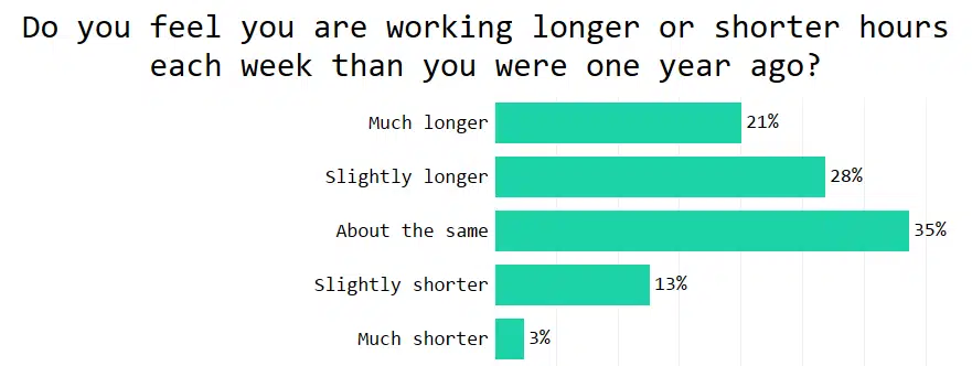 Even though we normally ask very specific questions about current work, last week we asked for your perception on working hours compared to last year.