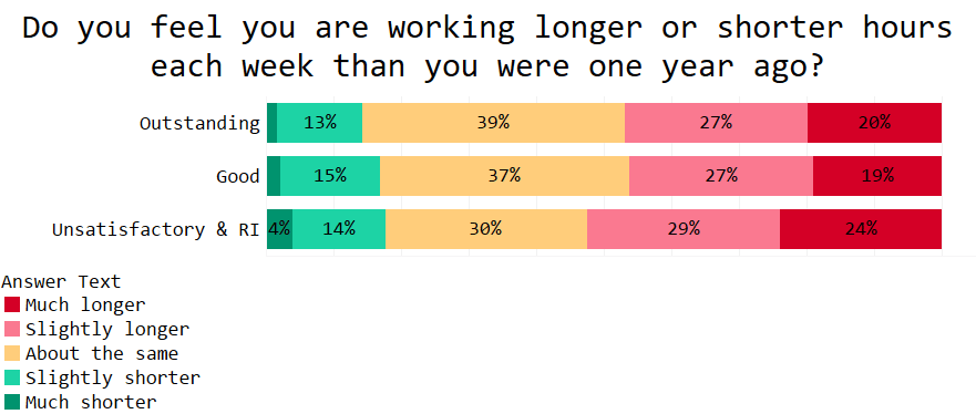 A school’s Ofsted grading didn’t tell us too much about whether or not staff perceived their hours to be worse: