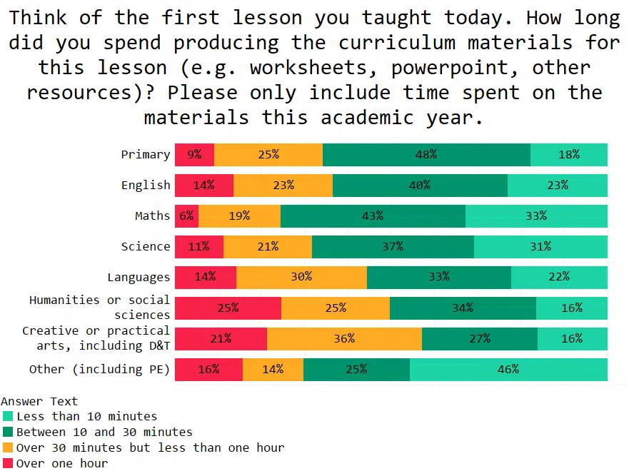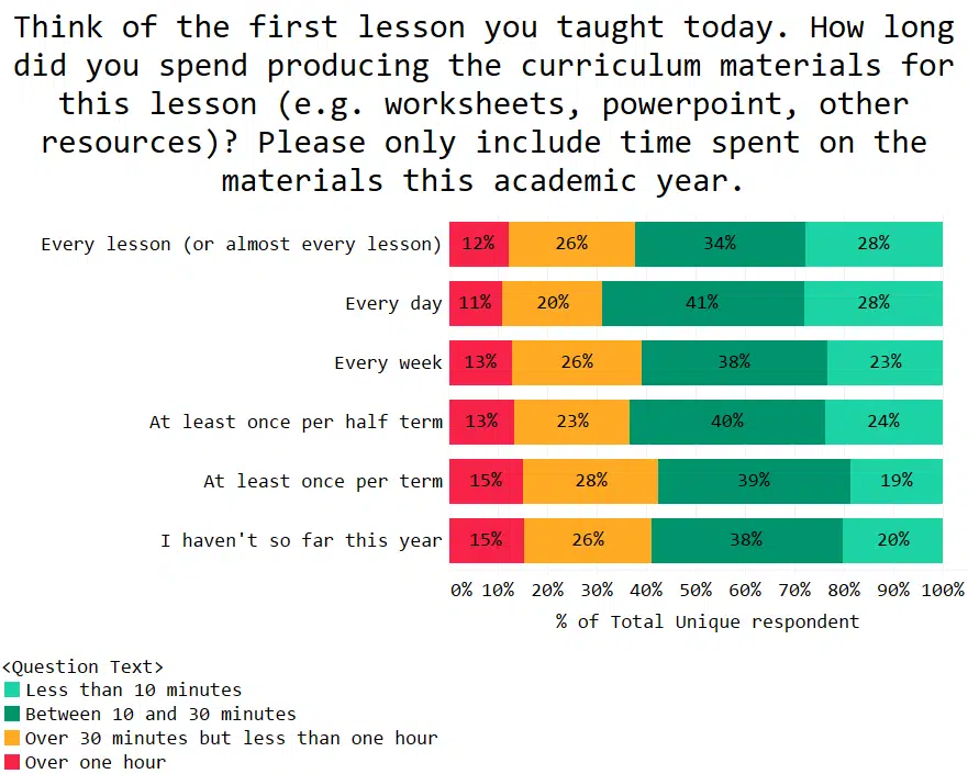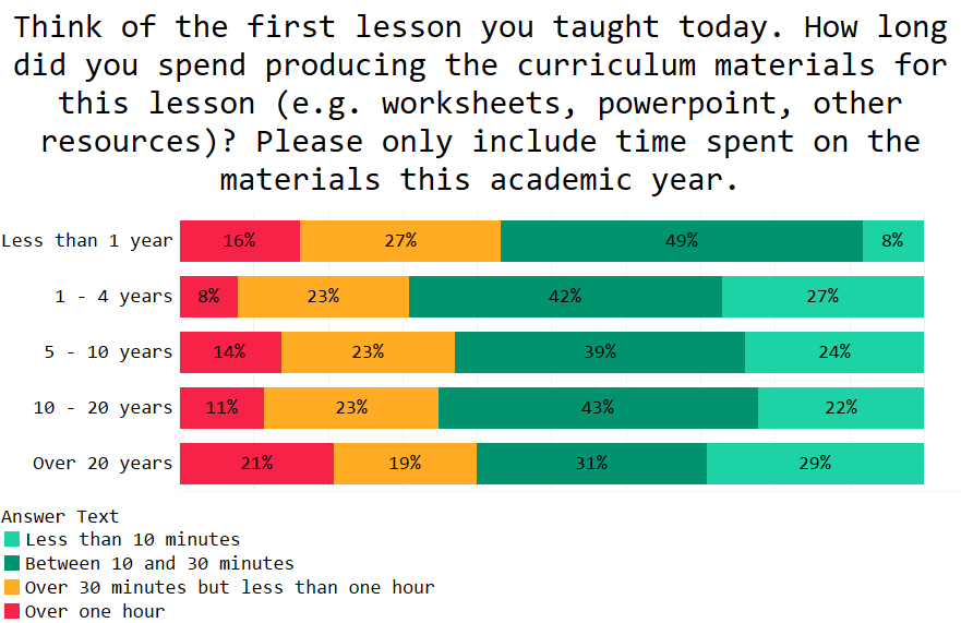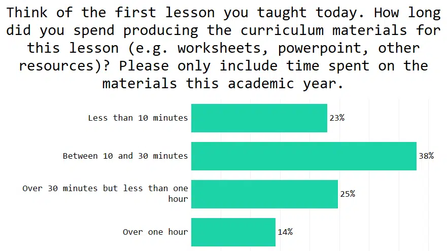 We rather assumed those of you who had been teaching a while would be throwing together a plan on a post-it note most days, but no! Even our most experienced teachers are spending a considerable amount of time preparing for a lesson.