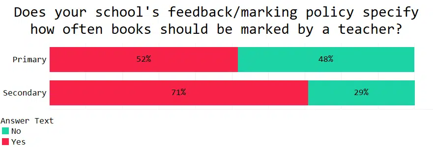 65% of you work in a school that has a marking policy telling you how often you should mark. Not sure how these policies can be aligned with Government recommendations from the 2016 marking report…
