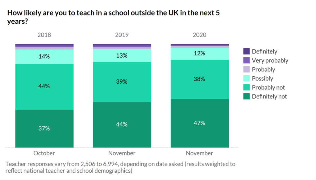 A final note… It’s been a tough time for those working overseas, with school closures and difficulties in travelling between countries. Those of you who are currently in the UK feel less inclined to seek a teaching job overseas at the moment. This is understandable (and actually bodes well for teacher retention)!