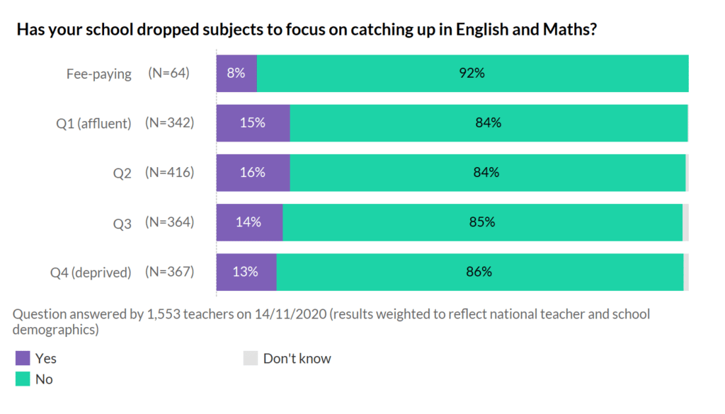 How to squeeze in this extra English and Maths? Relatively few are dropping subjects altogether. Most are just squeezing time some other way.