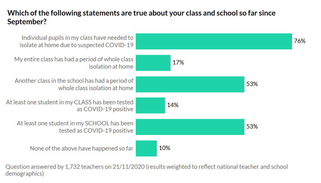 With more positive vaccination news this week, it feels like we are so close and yet so far from normal life. So close, because hopefully students will be able to come to school as normal in 2021. So far, because more teachers and students than ever before are at home. A massive 11% of you in Yorkshire and the North East said you were isolating at home last week on Tuesday. (The North West is the only part of the country where things seem to be getting much better.)