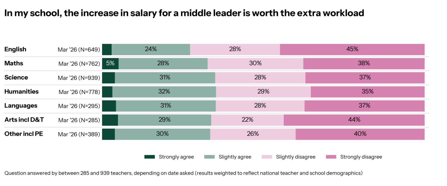 With such low enthusiasm for middle leadership pay rewards, could this be contributing to the sluggish classroom teacher to headteacher pipeline? We plan to ask more questions to find out.