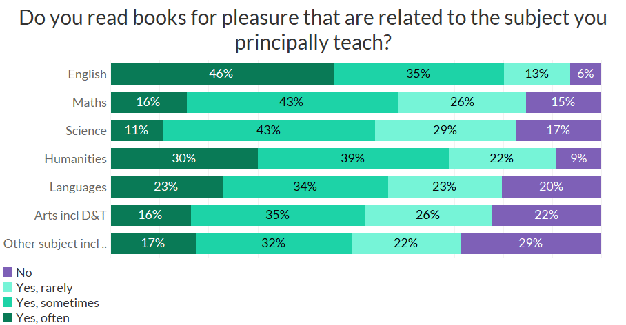 This is especially surprising seeing as English and humanities teachers are those most consumed in their subject discipline that they read related books in their free time. Although, we guess it would be hard to be an English teacher if you didn’t like reading a lot!