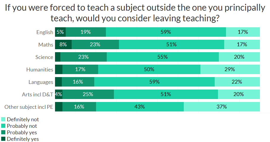 We asked the secondary teachers whether they would leave the job if they were forced to teach outside their subject.